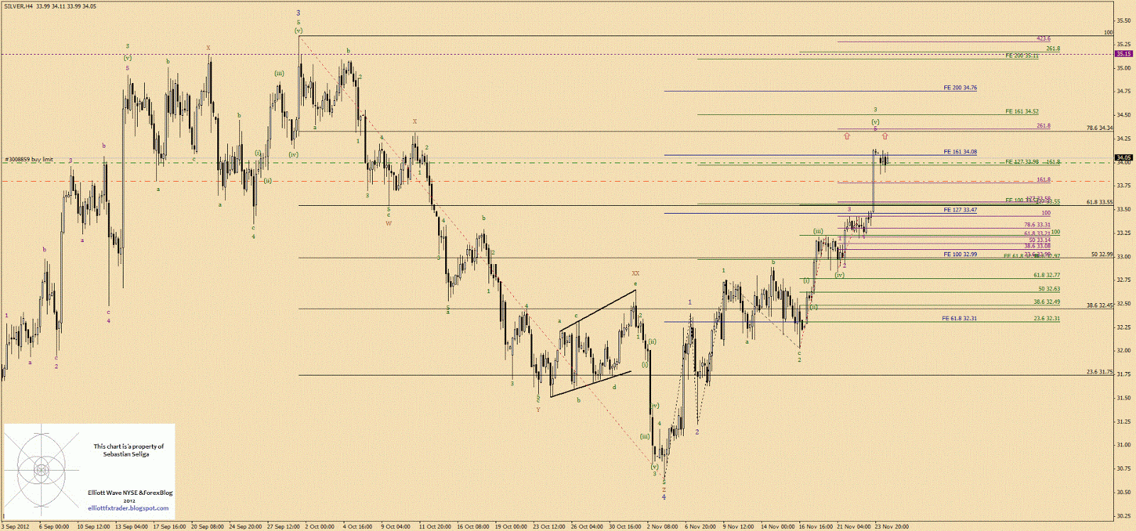 Source | Elliott Wave NYSE And Forex Blog | http://elliottfxtrader.blogspot.com/2012/11/silver-xagusd-h4-update-trading-plan.html